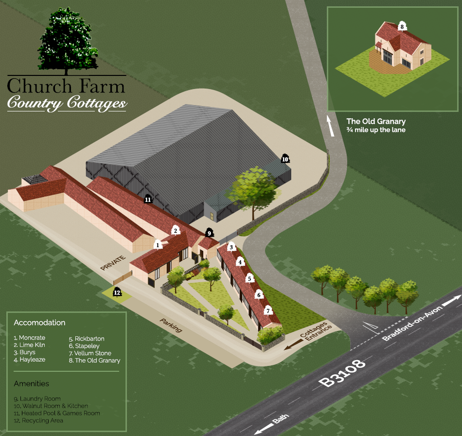 Situated on the edge of Winsley village, Church Farm is within walking distance of a host of amenities, including an excellent Village Pub and Family Farm Shop & Cafe.